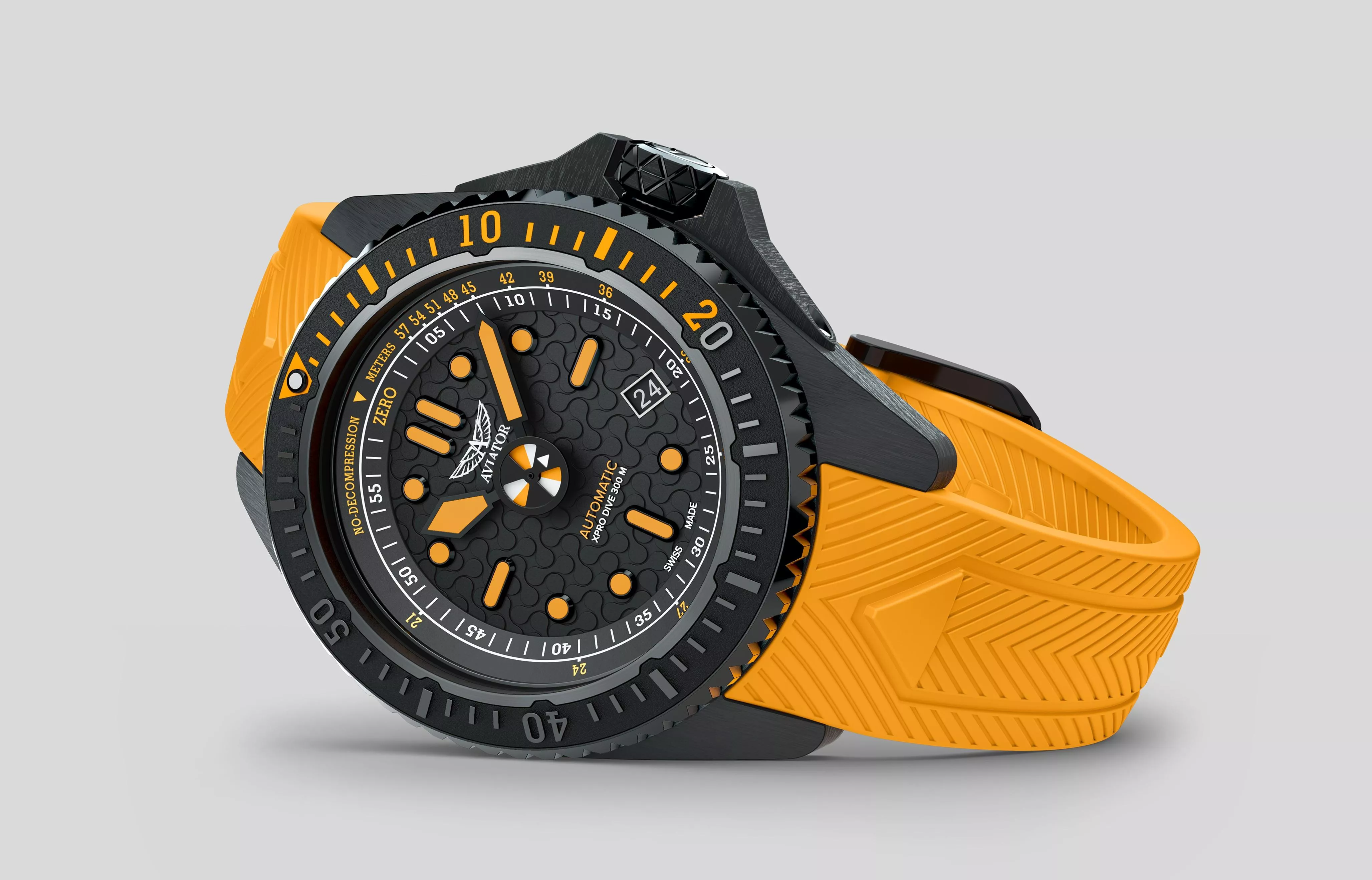 AVIATOR XPRO DIVE BREATHER DIVE 300 AUTO 是一款雙環境工具腕錶,旨在在兩個世界中脫穎而出。它由精密的瑞士自動機芯驅動,在任何環境下都能提供值得信賴的可靠性。其雙重免減壓刻度改編自海豹突擊隊潛水手冊,無論您是在海平面潛水還是探索高海拔水域,都能讓您在安全的時間限制內潛水。整合的呼吸盤——靈感來自海豹突擊隊的箱式呼吸技術——引導穩定的呼吸週期,即使在深水中也能一目了然地確認手錶是否正在運行。單向錶圈提供可靠的安全性和多功能計算,而瑞士 Super-LumiNova® X1 或 BGW9 夜光材質確保錶盤在完全黑暗的環境中仍然清晰易讀。 XPRO DIVE 堅固而精緻,配有琺瑯或氧氣泡圖案錶盤可供選擇,可輕鬆融入冒險生活——從海洋潛水到山間小徑,從駕駛艙飛行到海上運動度假。它不僅是經典潛水錶的演變,更是一種新型潛水錶——真正連結海洋和天空的世界。